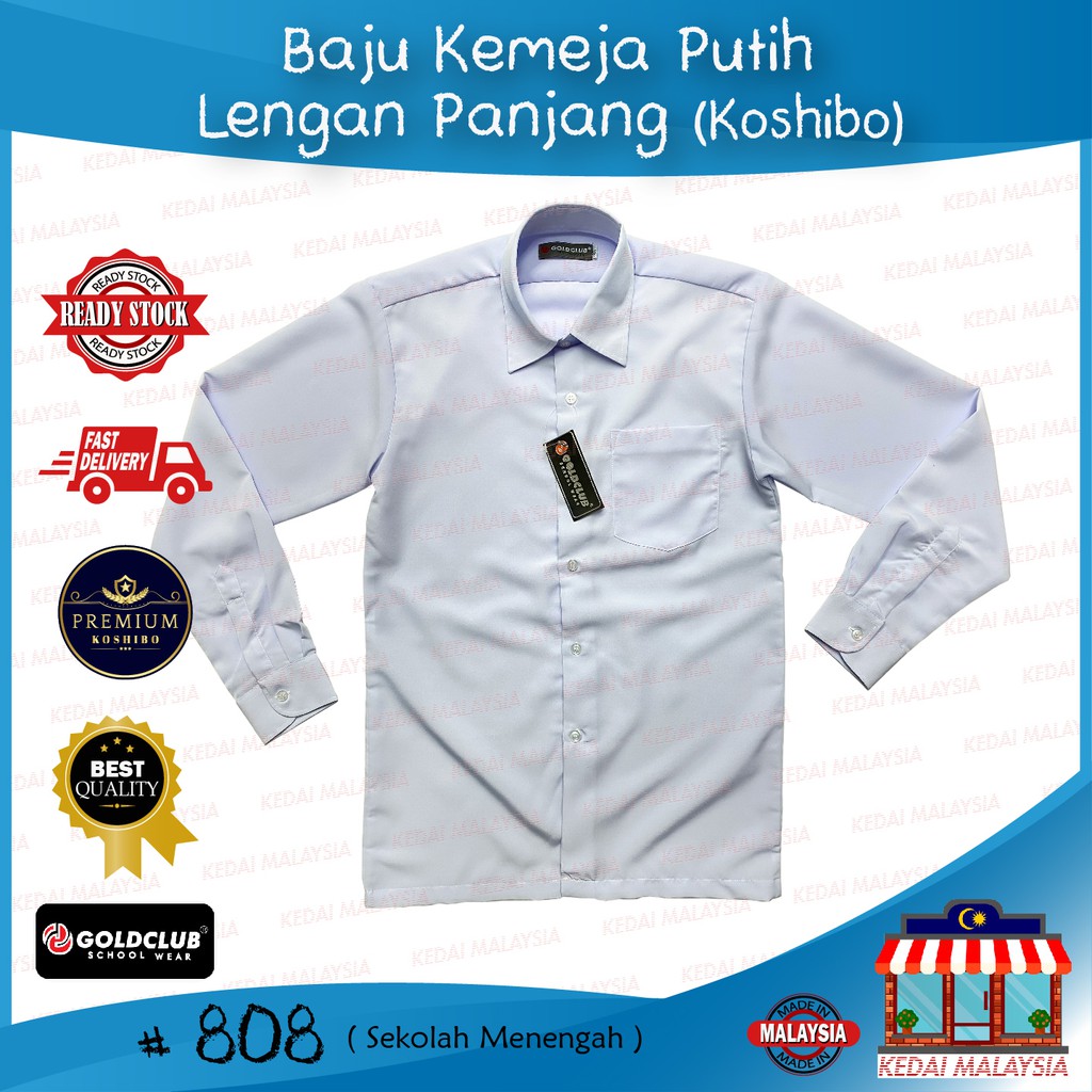 Baju Kemeja Putih Sekolah Menengah Lengan Panjang Primary School Long Sleeve White Shirt 长袖白色校服 Mt 808 Shopee Malaysia